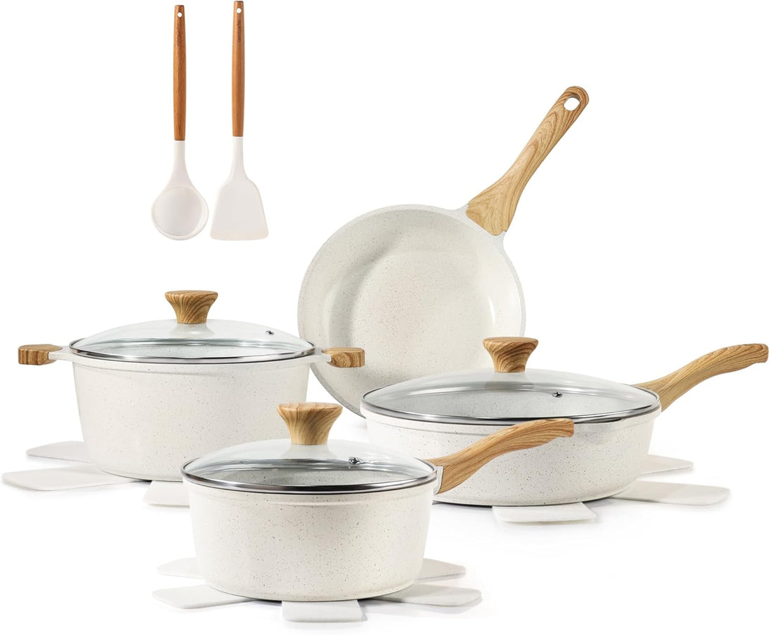SENSARTE Nonstick Ceramic Cookware Set 13-Piece, Healthy Pots and Pans Set, Non-toxic Kitchen Cooking Set with Stay-Cool Handles, Silicone Tools and Pot Protectors, PFAS and PFOA Free
