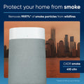 - LET’S CLEAR THE AIR BETTER: Removes at least 99.97% of tiny airborne particles like viruses and smoke down to 0.1 microns, and captures pet dander, pollen, mold allergen and dust; carbon filter traps light household odors from smoking, pets and cooking***