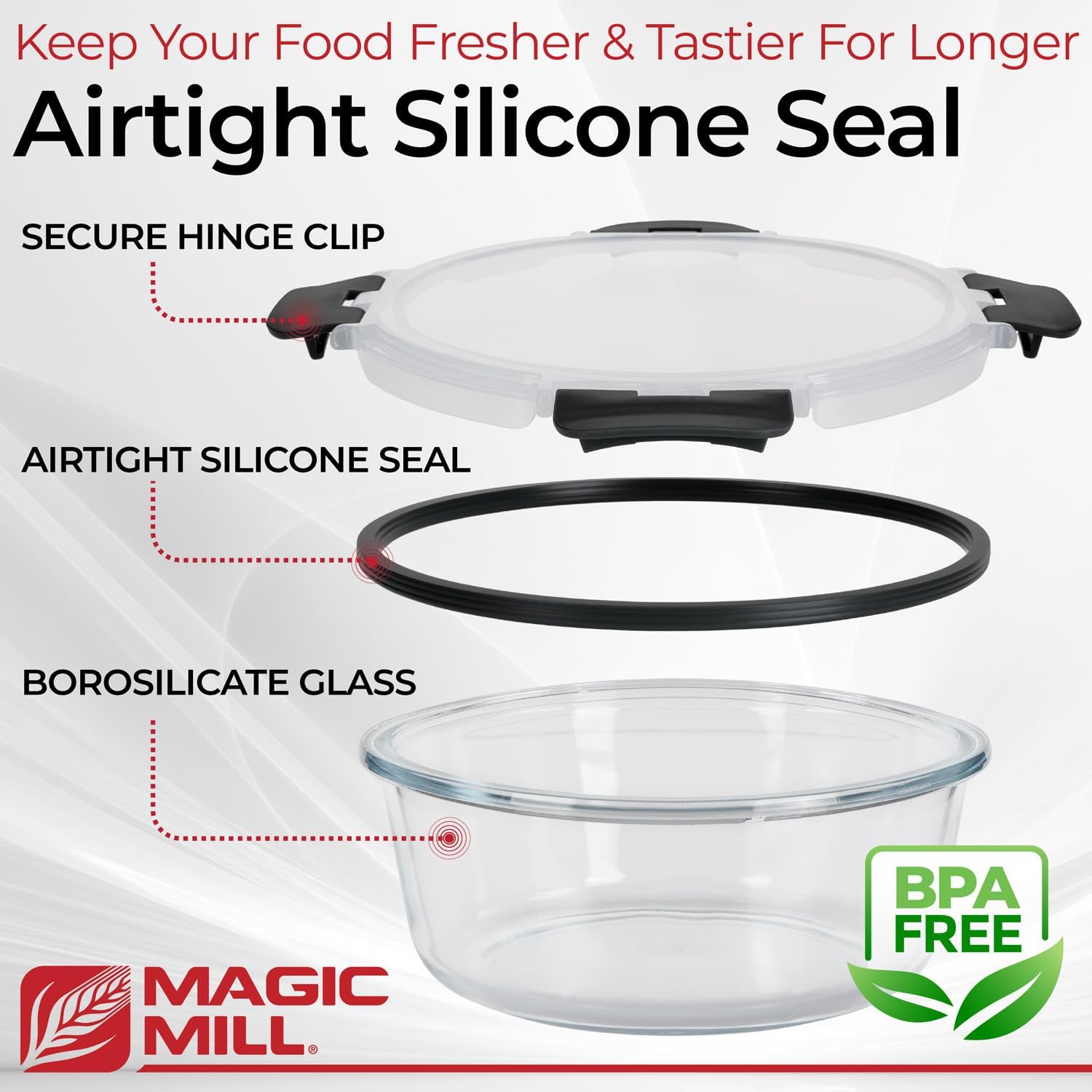 - MAGIC MILL'S ULTIMATE GLASS FOOD STORAGE CONTAINERS – Transition from plastic to a sustainable lifestyle with our premium glass food storage containers made from high-quality borosilicate glass, designed to last and offer a long-term solution for storing your favorite meals and ingredients.